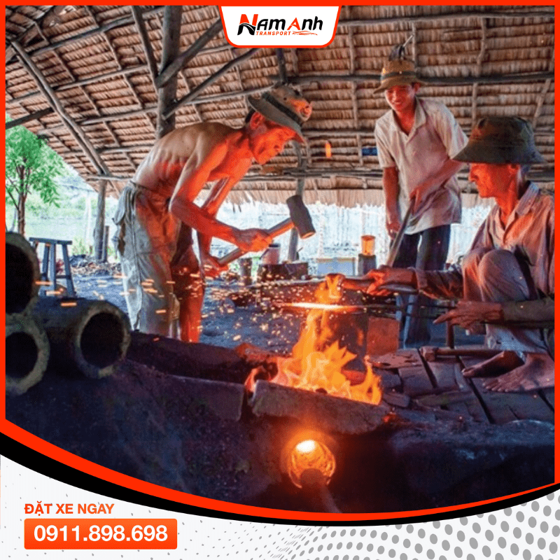 Người Nùng An ở đây vẫn giữ bí kíp “rèn một lần, sắc mãi mãi”. Du khách thường mua dao đi rừng, dao bếp hoặc dao trang trí làm quà – giá chỉ từ 150–500 nghìn đồng.